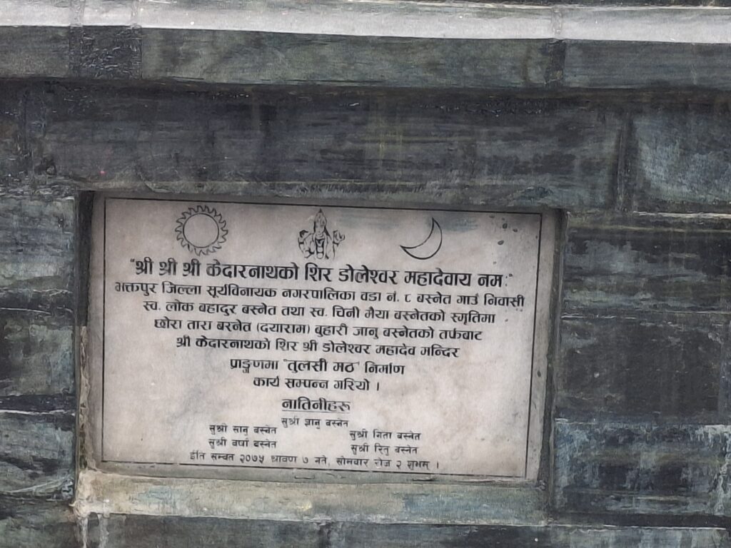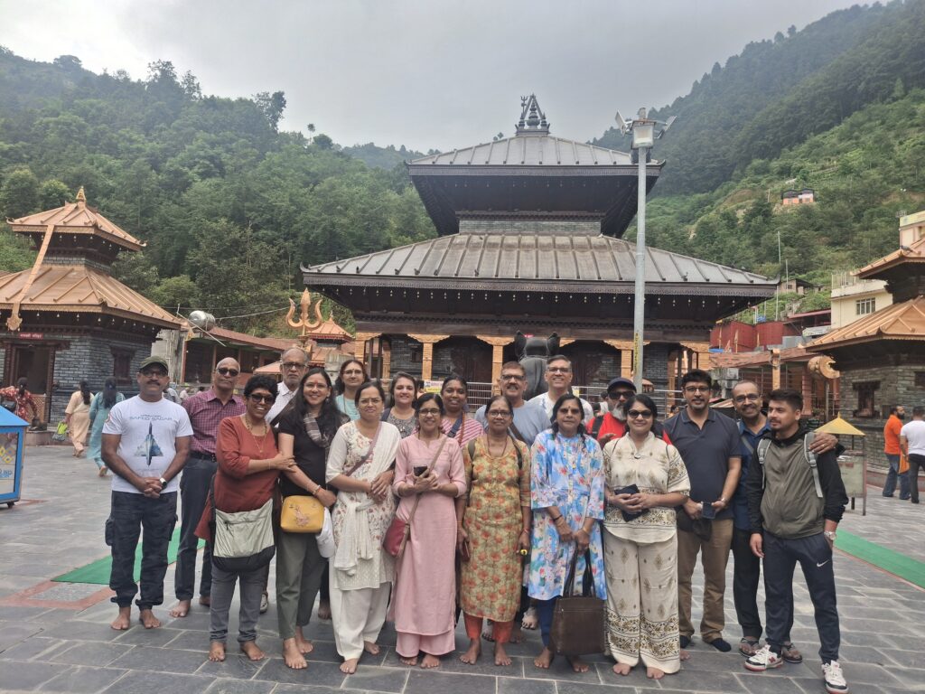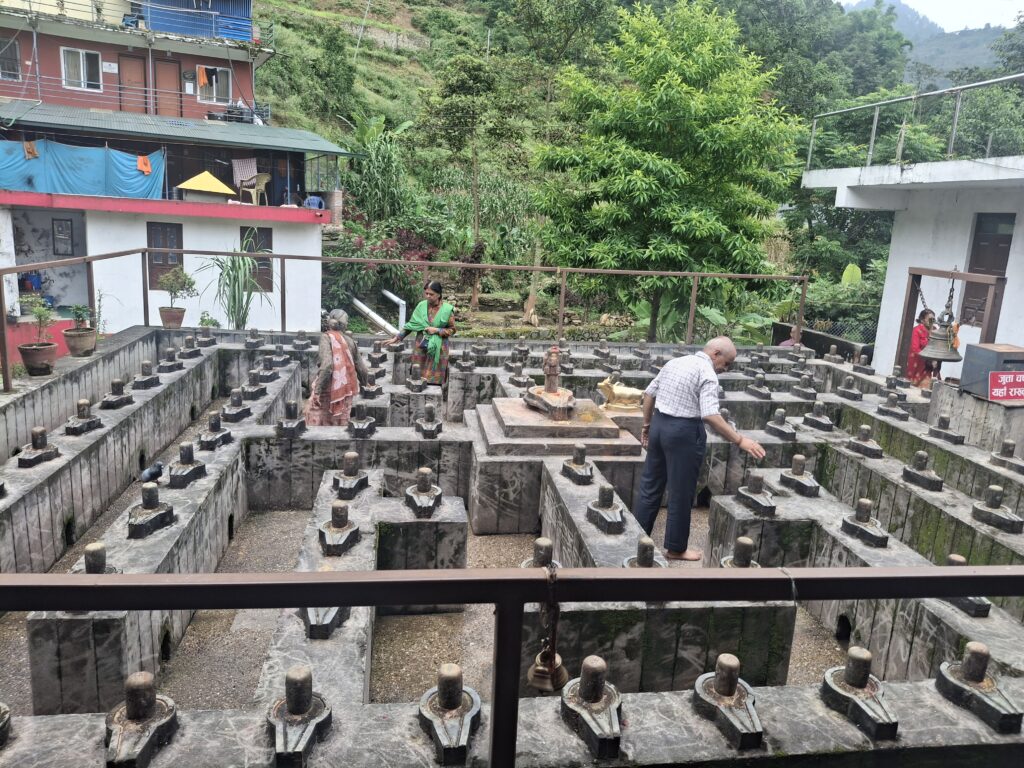The next day, we visited the Doleshwor Mahadev Temple in the Bhaktapur district, about 20 km from Kathmandu. It is located in scenic surroundings away from the busy noise and dust of the city. Doleshwor Mahadev is believed to be the head of Kedarnath. According to religious beliefs, the Pandavas, after the Mahabharata, travelled to the Himalayas seeking forgiveness from Lord Shiva for the killing of many people during the war. However, Shiva was unwilling to forgive them, so he disguised himself as a bull. When the Pandava brothers tried to catch the bull after learning about Shiva’s disguise, they could only catch the tail, while the head of the bull was separated from the rest of the body. According to Hindu scriptures, the remaining body is in Kedarnath, while it is believed that Doleshwor is the head of the bull. This is also mentioned in the Shiva Purana and other holy books, which have been passed down through generations. We were told that all prayers at Doleshwor, from the morning ritual to the evening Arthi, are performed according to the rules and rituals of the Kedarnath temple. Behind the temple, there are 108 Shiva lingas opposite the Manakamana temple.